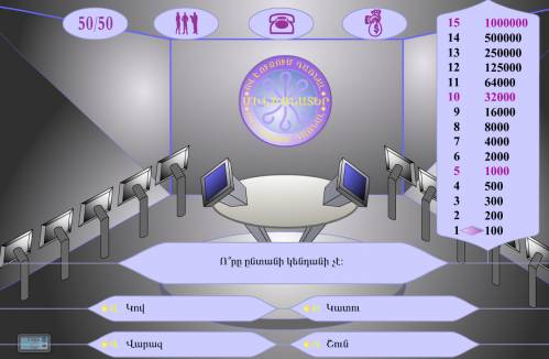 Ո՞վ է ուզում դառնալ միլիոնատեր` խաղի հայերեն նոր տարբերակ արդեն հասանելի է բոլորին: Խաղի հեղինակ Դավիդ Ասլանյան: Ինքս խաղացել եմ ու ասեմ որ շատ լավ է պատրաստվաց հարցերի կրկնությունը շատ քիչ է և դա գովելի է: Թարմացվել է նաև դիզայնը: Այն կարող եք բեռնել սեղմելով այստեղ: Միլիոնատեր դարցողները կիսվեն մեկնաբանություններում: