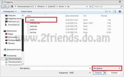 2.Դրանից հետո մտնել Файл>Открыть և բացել վերը նշված ֆայլերը(որոնման ժամանակ պետք է ընտրել բոլոր ֆայլերը,քանի որ hosts ֆայլը *.txt ֆորմատով չէ)